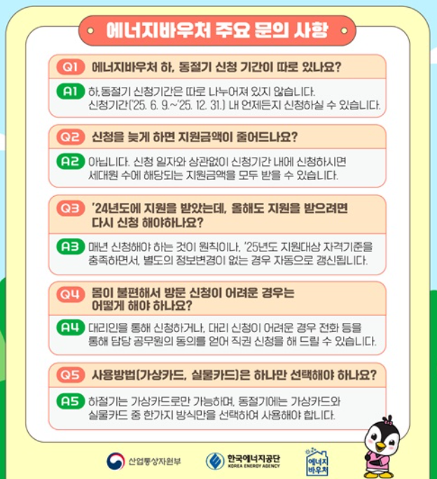 2025년도 에너지바우처 신청이 시작됐습니다. 냉·난방비가 부담되는 가구라면 꼭 챙겨야 할 정부지원 제도예요.