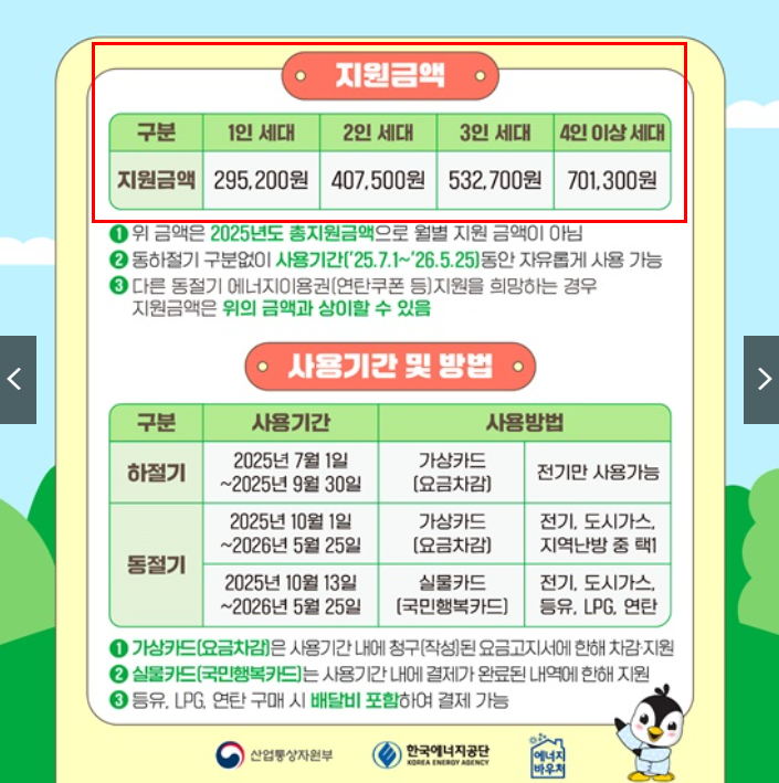 1. 에너지바우처 지원금액