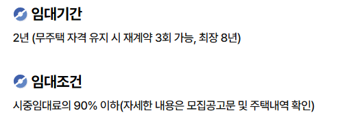 - 최초 2년 + 재계약 3회 가능 = 총 8년 거주