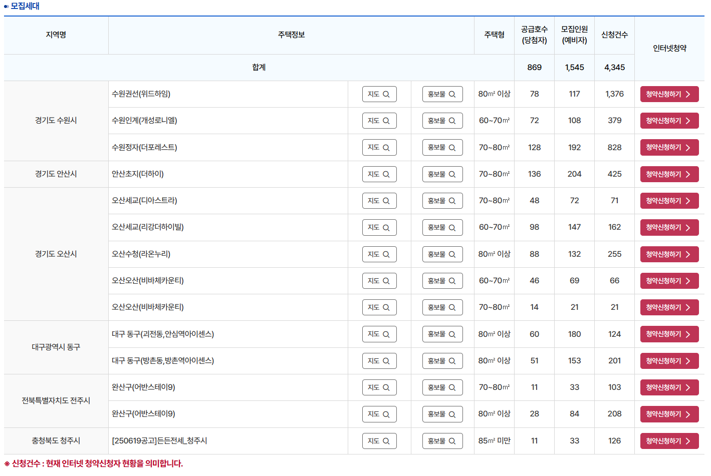 - 지역별로 공급되는 주택의 유형, 면적, 보증금 등 상이